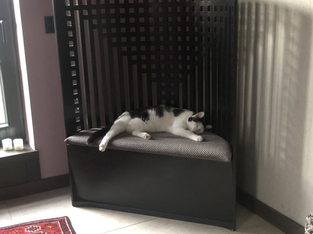 Na? Wie ist das? Ich übe fleißig Englisch, damit Purrlock Holmes aus Amsterdam und ich uns verständigen können. Wenn er denn wirklich kommt! Und wenn nicht: Englisch ist nützlich, wer weiß schon, was in 2026 alles passiert. Bereits der Jahreswechsel war ungewöhnlich. Kaum Knallerei. Die Insel der Zugereisten war nahezu böllerfrei. Nur die Einheimischen im Dorf konnten es nicht lassen. Aber das ist weit genug entfernt. Außerdem darf ich mich heute in „The Hall“ aufhalten. Keiner beachtet mich, also habe ich es mir auf dem Willow Chair bequem gemacht. Ein schottischer Architekt hat das Original einst entworfen. Stellt euch vor: Hier sind keine Erbsen unter dem Polster. Der Entwerfer versteht sein Handwerk.