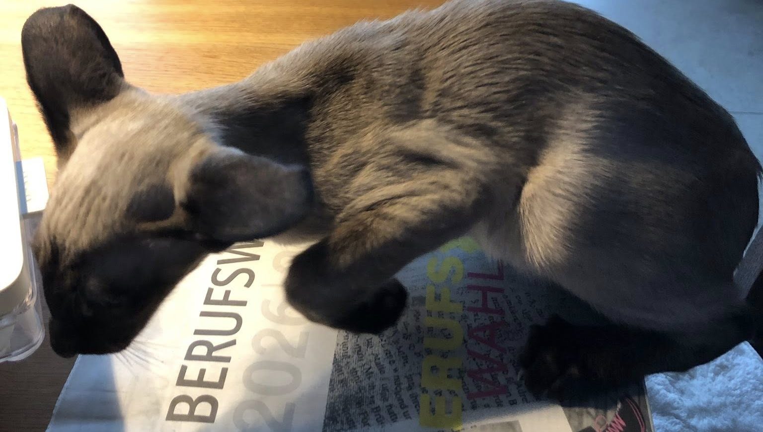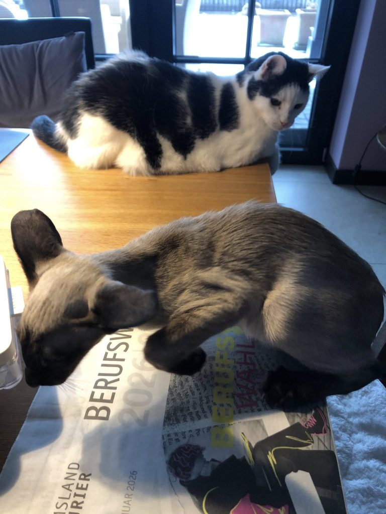 Das erste Mal, als die Dosenöffner mit diesem Dreikäsehoch nach Hause kamen. Vor fast 2 Wochen war das. Er sprang wie ein Känguru und schrie wie eine Ziege. Beides ununterbrochen. Ich bin sofort ausgezogen. Zack, bin ich ins Gästebett gesprungen, unter die Decke. Ich sehe nichts, ich werde nicht gesehen und höre das Gezeter nur gedämpft. Ich habe keine Ahnung, was die Dosenöffner sich dabei gedacht haben, diesen Hooligan ins Haus zu holen. Er frisst ihnen die Haare vom Kopf und mir aus dem Napf. Letzteres stoppte jedoch abrupt an Tag 2. Er übergab sich und im Katzenklo roch es äußerst unangenehm.