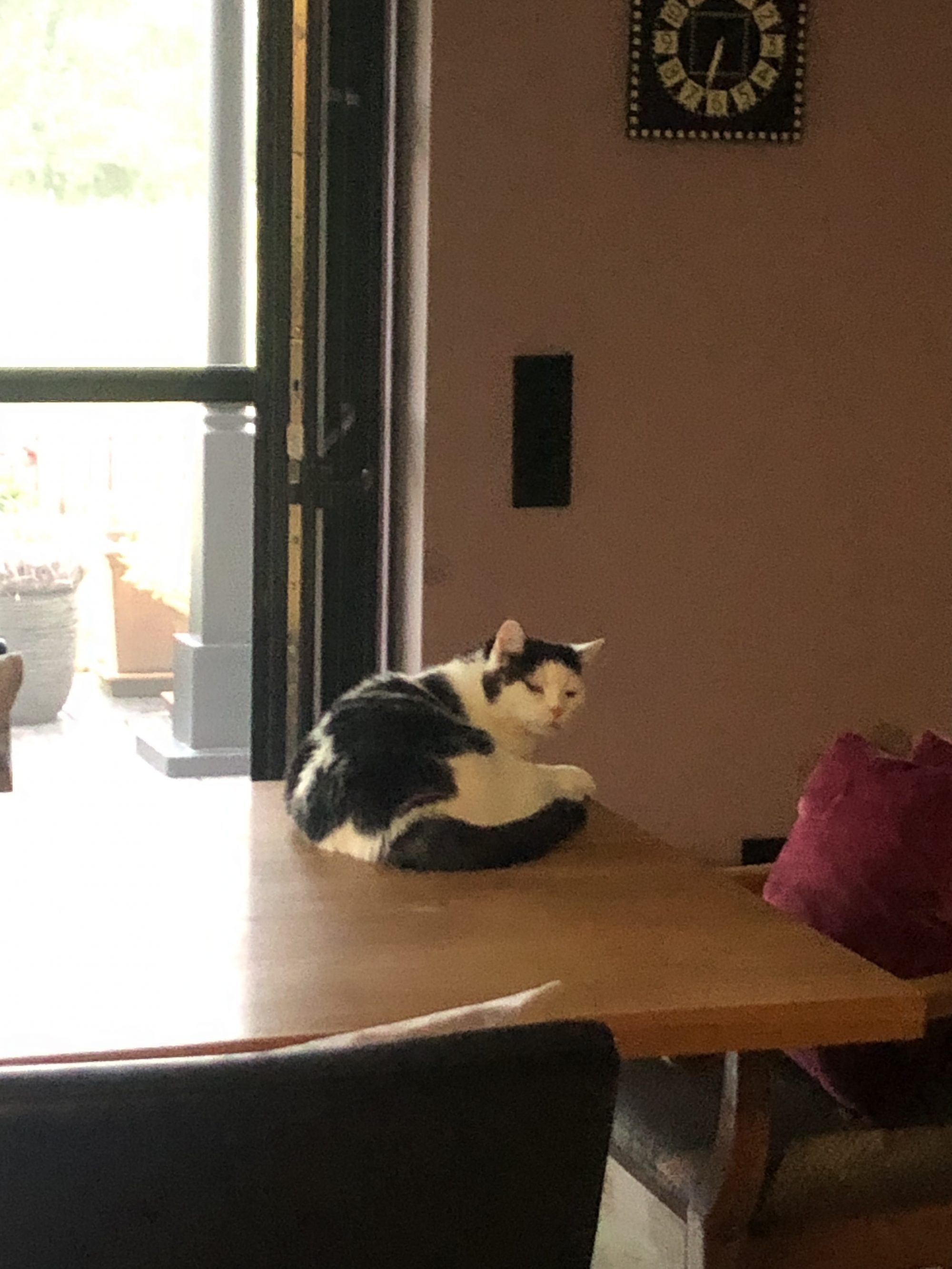 „Ich habe Hunger. Meistens. Bisher waren es die Dosenöffner, die mir den Napf füllten. Wie es sich auch gehört. Gut, des Öfteren musste ich sie nachdrücklich bitten, auffordern, gelegentlich musste ich laut und anstrengend werden. Aber dass das so ist, weiß man ja, bevor man sich eine Katze anschafft. Deswegen. Protestiere. Ich. Laut und energisch. Ich lehne es ab, mich von einer Maschine füttern zu lassen. Zu der ewigen Schikane der unbequemen Sitzplätze – die Dosenöffner legen Erbsen unter meine Kissen – kommt jetzt das entwürdigende neue Fressritual. Ein Roboter füttert mich. Das Futter kommt nicht mehr aus dem Kühlschrank, wird nicht mehr liebevoll mit dem Löffel in den Napf gefüllt, NEIN, es kommt aus dunklen Kanälen unterhalb der Fressmaschine. Wenn es dann angekommen ist, nahezu tiefgefroren, öffnet sich knirschend eine Klappe und der Roboter läutet mich herbei. Dreimal täglich. Eine komplexe KI steuert jetzt mein Fressverhalten. Ich muss meinen edlen Kopf in einen schwarzen monströsen Schlund beugen, um Futter zu fassen. Ich kann nicht mehr. Ich will nicht mehr. Ich wandere aus …“