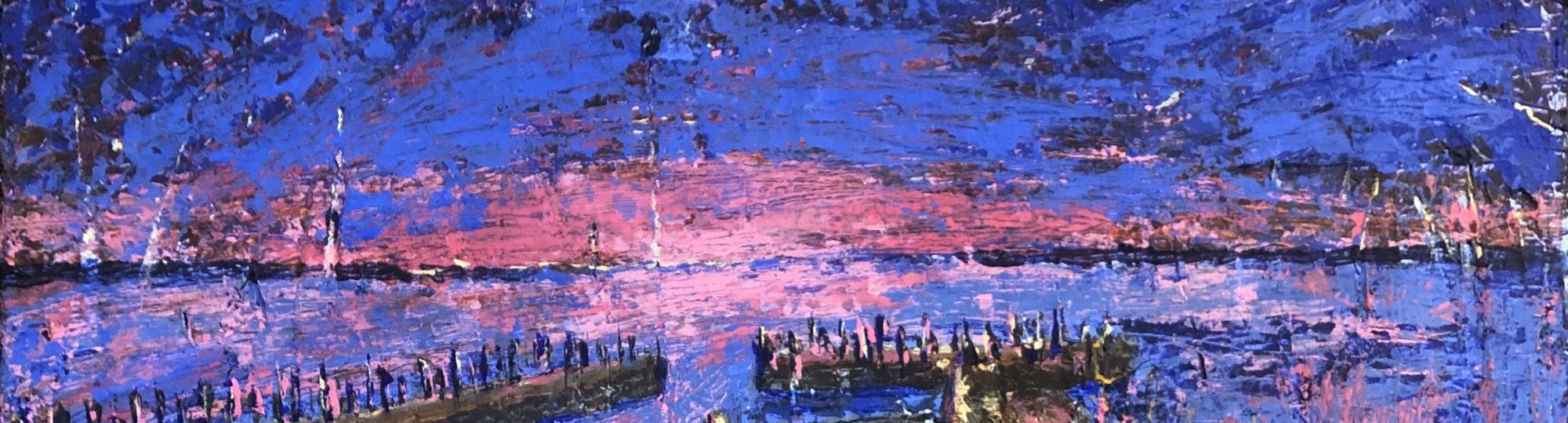 Noch am Silvesterabend mit gezaubertem Sonnenuntergang – keine Ahnung, ob er mit dieser Perspektive überhaupt je stattfindet – habe ich das Seestück fertiggestellt. Es heißt „Zwischendurch Ahnung von Meer“ (Dezember 2025).